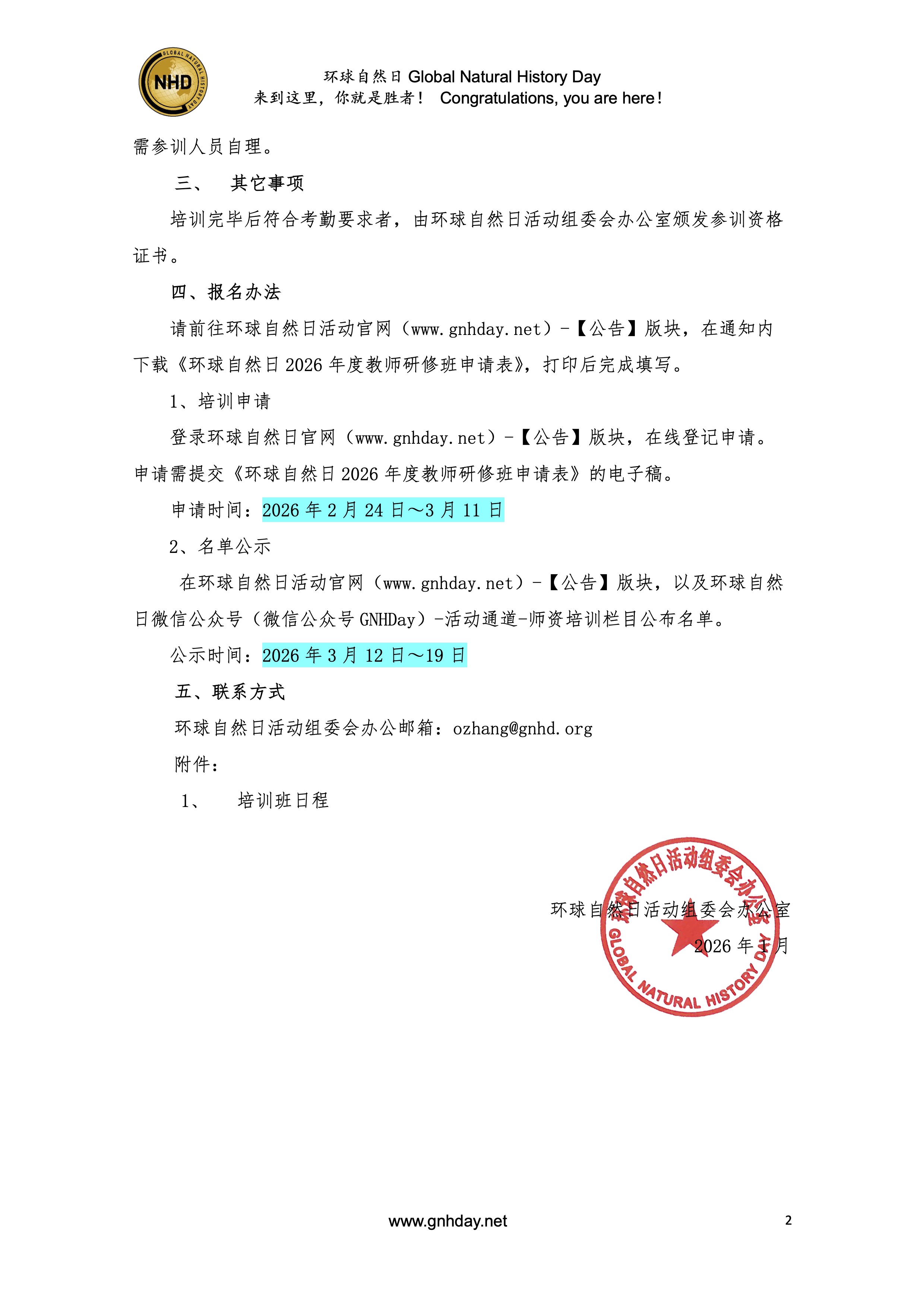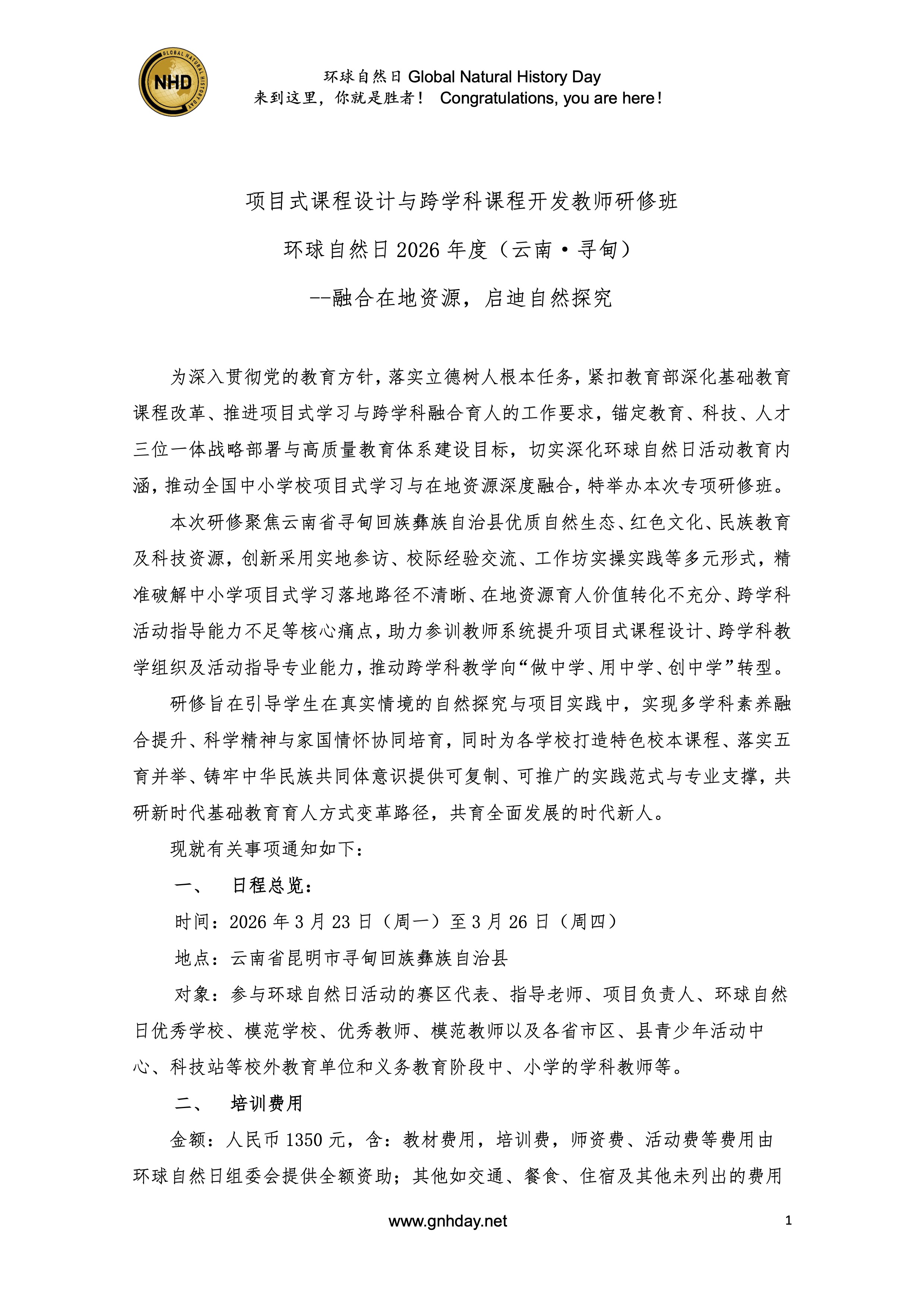 环球自然日2026年度(云南·寻甸)教师研修班通知